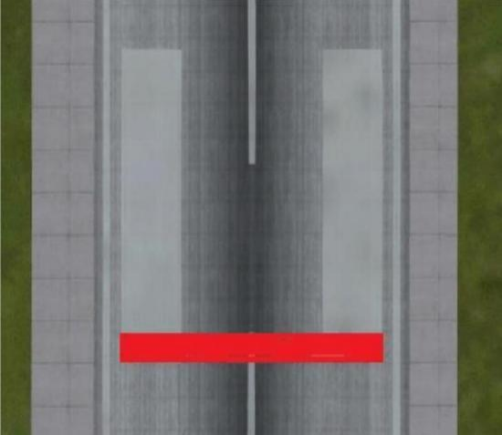 科目4:着陆:要求接地位置、接地率和接地过载。具体要求是接地位置在跑道白 块中心点,飞机的接地率尽量小,接地过载尽量小, 着陆滑跑到停止前偏离中线的差 距尽量小,刹停飞机;如下图,红色区域为满分接地区,位置为落地区大白点的起始端。